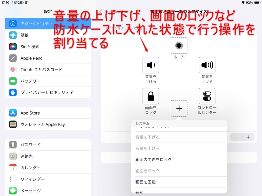 防水ケース越しでも簡単に操作できるので、お風呂iPadを使うなら絶対に設定しておきたいポイント。
