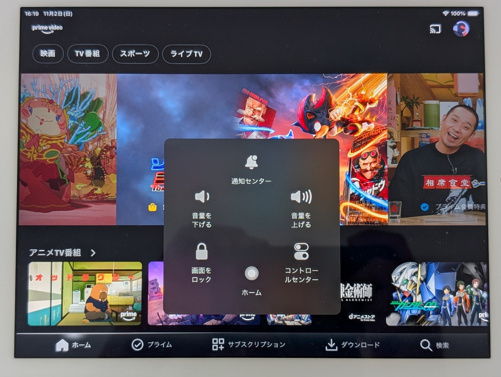 このボタンから、音量操作や画面ロック(スリープ)などが画面上のタップ操作だけでできるようになります。