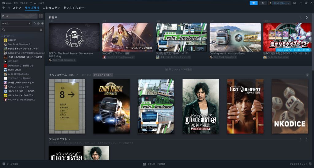 ゲームのダウンロードやライブラリの操作方法もWindowsと全く一緒です。